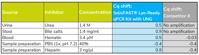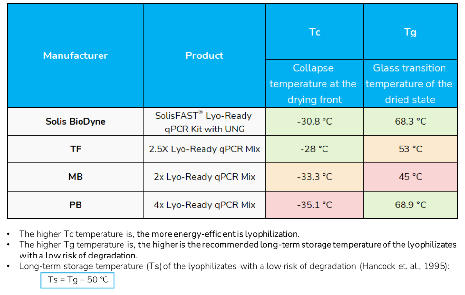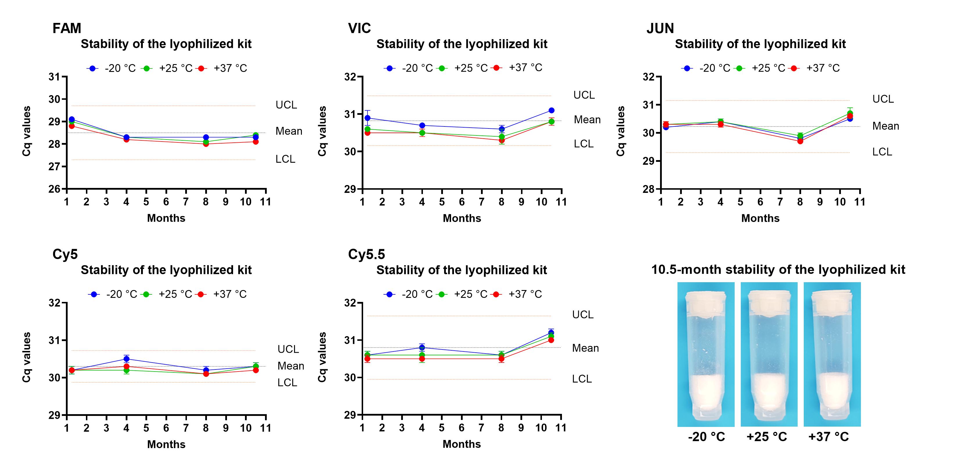Consistent performance before and after lyophilization, as well as after lyophilization with primers and probes.