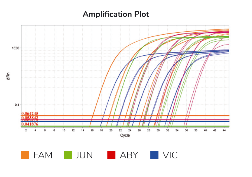 Reagent composition is optimized for excellent performance in highly multiplexed reactions while making sure you don't lose in sensitivity compared to singleplex or duplex assays.